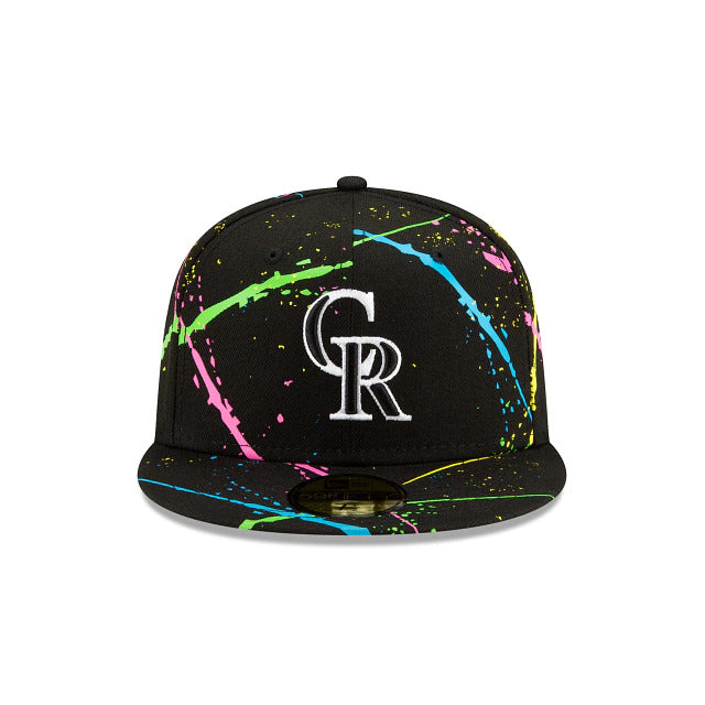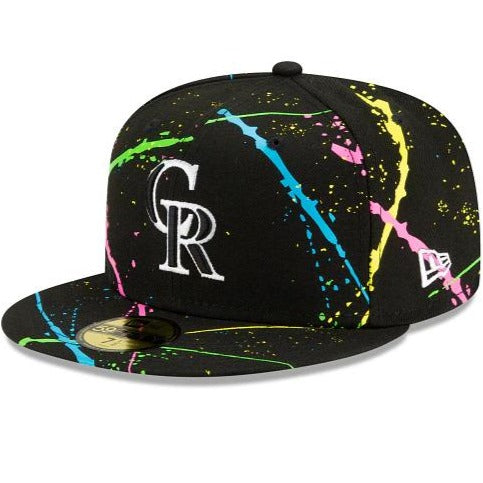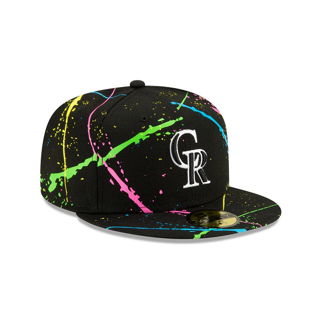 Light up the night with the Colorado Rockies Streakpop 59FIFTY Fitted Cap featuring an embroidered team logo at the front panels with a neon splatter detailing throughout the crown and a MLB Batterman logo at the rear. Additional details include a gray undervisor.