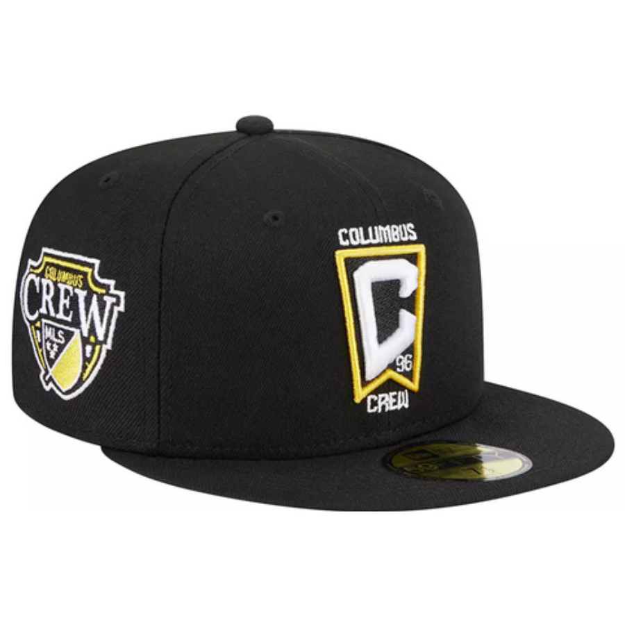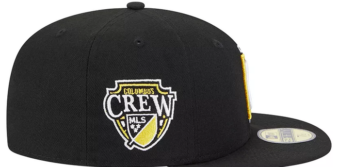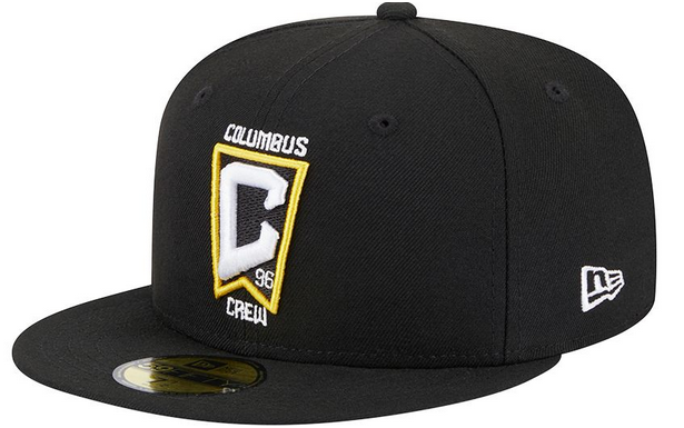 This New Era 59FIFTY Columbus Crew 59FIFTY fitted hat was released by Dick's Sporting Goods. The fitted has a black six panel structured high crown, embroidered eyelets, fabric squatchee button and flat bill with a grey bottom under bill. The front and right-wear side features the Columbus Crew logo embroidery.