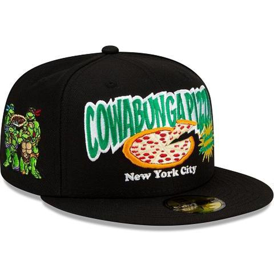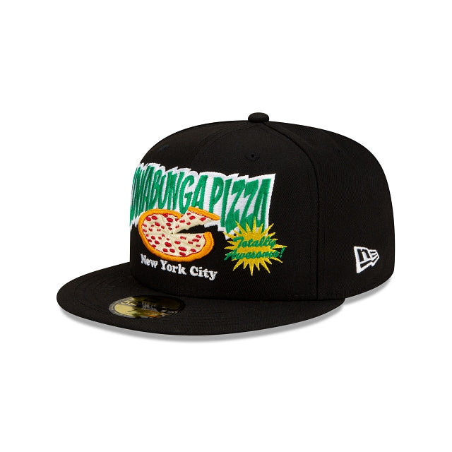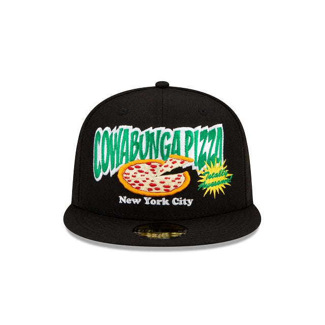 Cowabunga! The Cowabunga Pizza Teenage Mutant Ninja Turtles 59FIFTY Fitted Cap features a Cowabunga Pizza graphic embroidered at the front panels with the Teenage Mutant Ninja Turtles embroidered at the right-wear side and a Teenage Mutant Ninja Turtles wordmark at the rear.