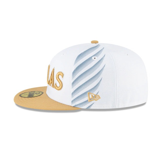 The Dallas Mavericks NBA Authentics City Edition 59FIFTY Fitted Cap features a unique city-inspired twist with an embroidered Mavericks logo at the front panels, an additional team logo at the right-wear side and the official NBA logo at the rear.