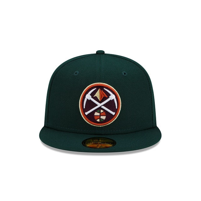 Carve some room in your rotation for the Denver Nuggets Turkey Dinner 59FIFTY Fitted Cap featuring natural hues of dark green, brown and tan with an embroidered Nuggets logo at the front panels and a matching NBA logo at the rear.