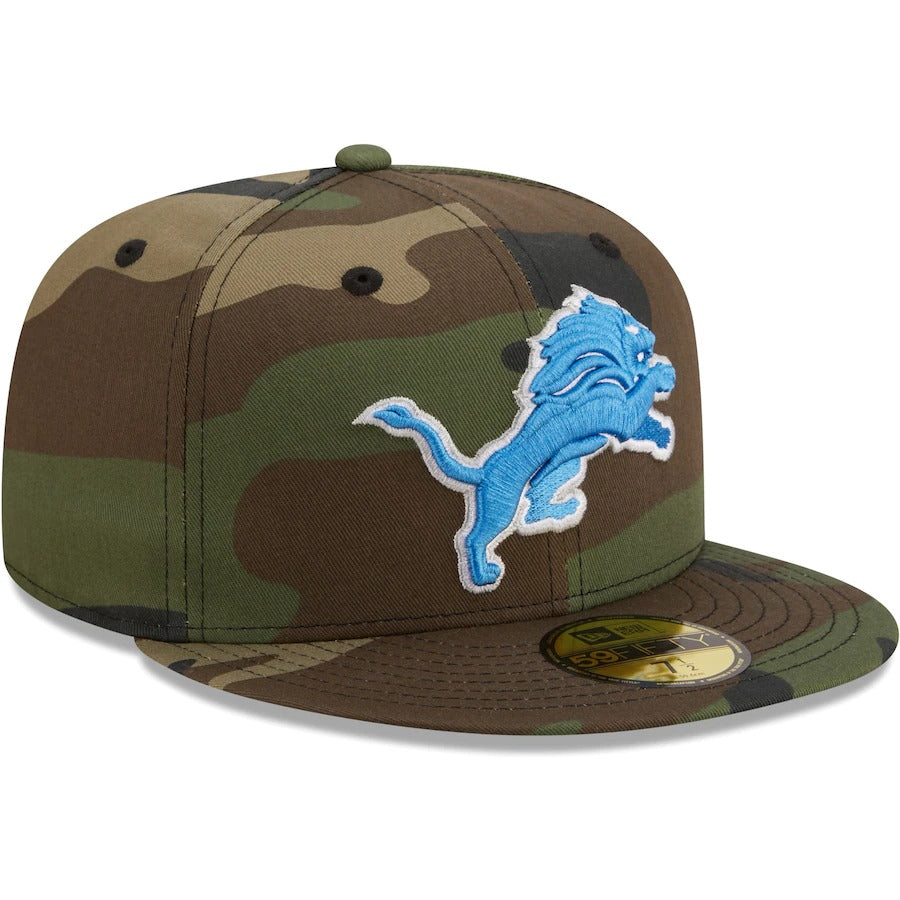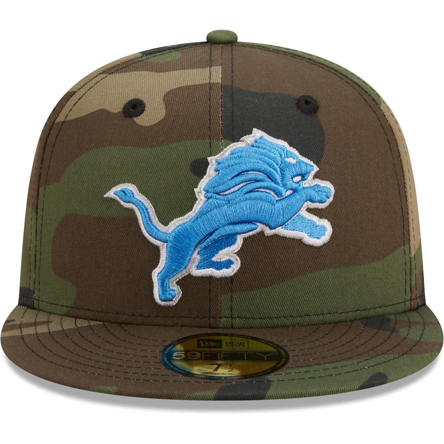 Stay shaded in bold Detroit Lions style with this Woodland 59FIFTY hat. This New Era headwear features an embroidered logo over a striking camo pattern. With a contrast undervisor for an extra dash of team color, this fitted cap is a must-have for any Detroit Lions game day attire.