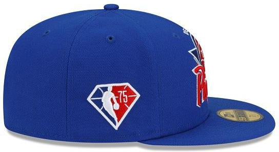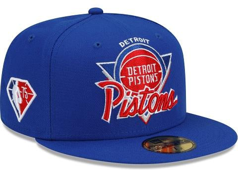 Fresh look for a fresh start. The Detroit Pistons Tip Off 59FIFTY Fitted Cap features a custom Pistons mark inspired by logos and wordmarks embroidered at the front panels with the Official NBA 75th anniversary logo embroidered at the right-wear side. Additional details include a team logo at the rear with a gray undervisor.