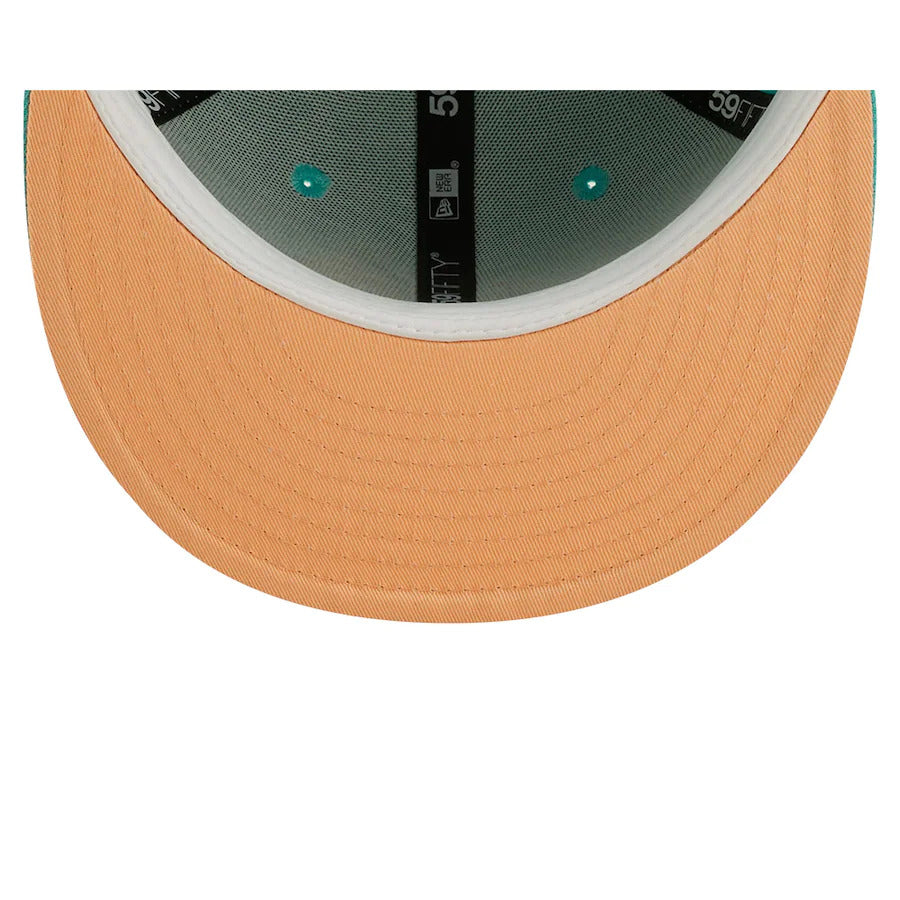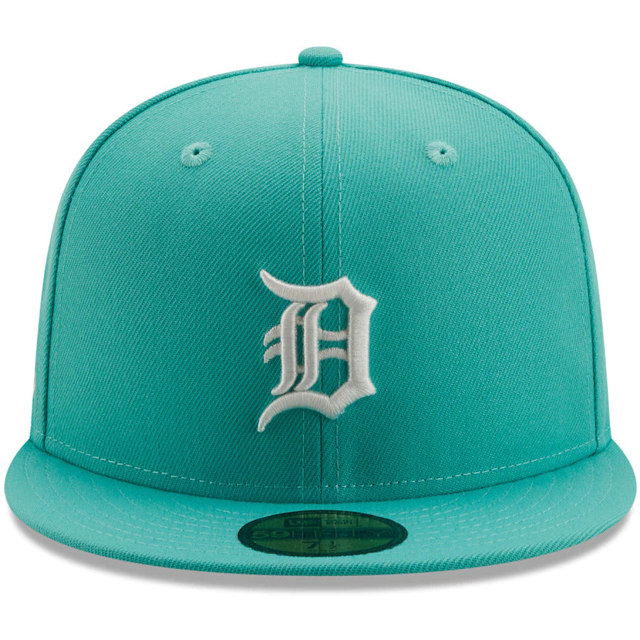 For a Detroit Tigers-inspired look that truly pops, cap it off with this Peach Undervisor 59FIFTY fitted hat. With a crisp Detroit Tigers logo set against an allover mint green shade, this New Era hat also has bold embroidery on the side dedicated to a memorable moment in franchise history. Show the world that you're no fairweather fan by donning this cap on game day.