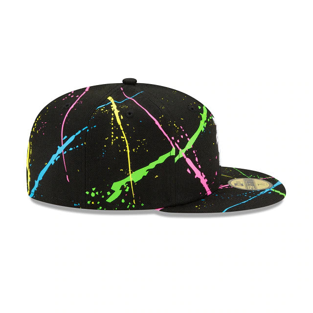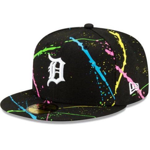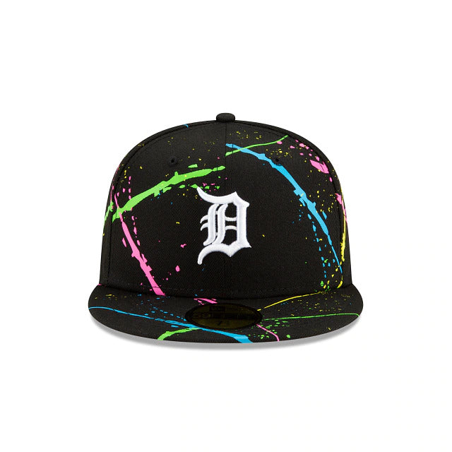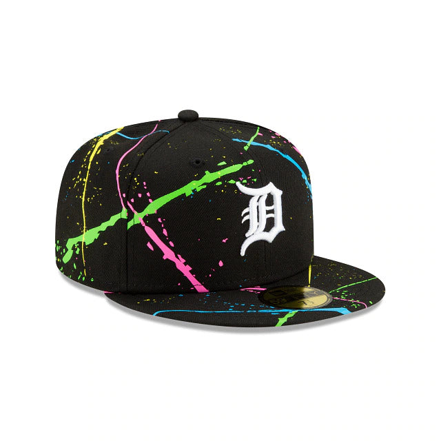 Light up the night with the Detroit Tigers Streakpop 59FIFTY Fitted Cap featuring an embroidered team logo at the front panels with a neon splatter detailing throughout the crown and a MLB Batterman logo at the rear. Additional details include a gray undervisor.