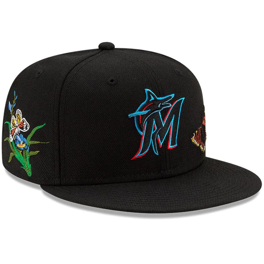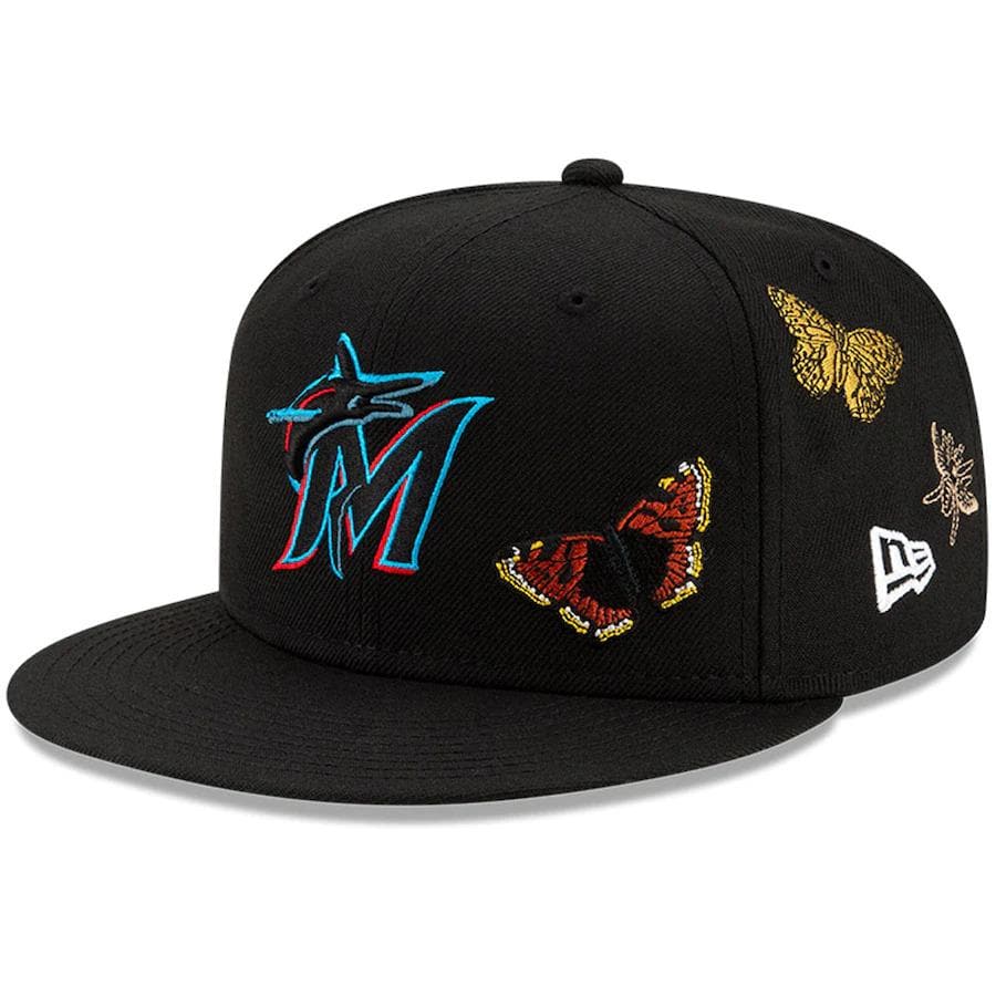 This Miami Marlins 59FIFTY Fitted Hat is a great addition to any collection. This wool hat is a special collaboration between New Era and FELT, that gives you a unique feel that will stand out in your closet. The butterfly design is sure to help you stand out when you're among fellow Miami Marlins fans.