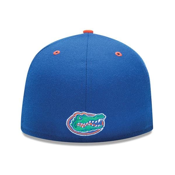 The New Era Florida Gators "F" Logo Alternate 59FIFTY Fitted Hat features a royal blue and orange colorway. The six panel structured high crown is royal blue as well as the flat bill. The fabric squatchee button and embroidered eyelets are orange. The back of the crown features the Florida Gators alligator logo.