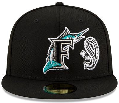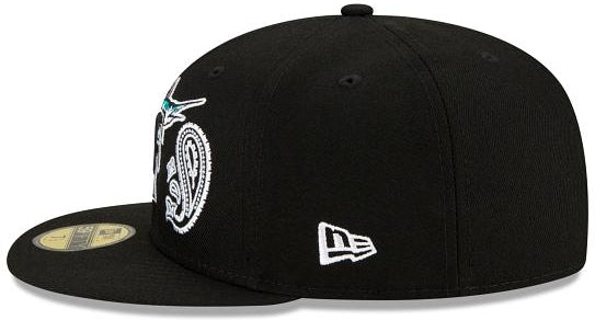 Piece together the ultimate look with the Florida Marlins Patchwork Undervisor 59FIFTY Fitted Cap featuring an embroidered Marlins logo with swirl detailing at the front panels, the MLB Batterman logo at the rear and a patchwork inspired undervisor.