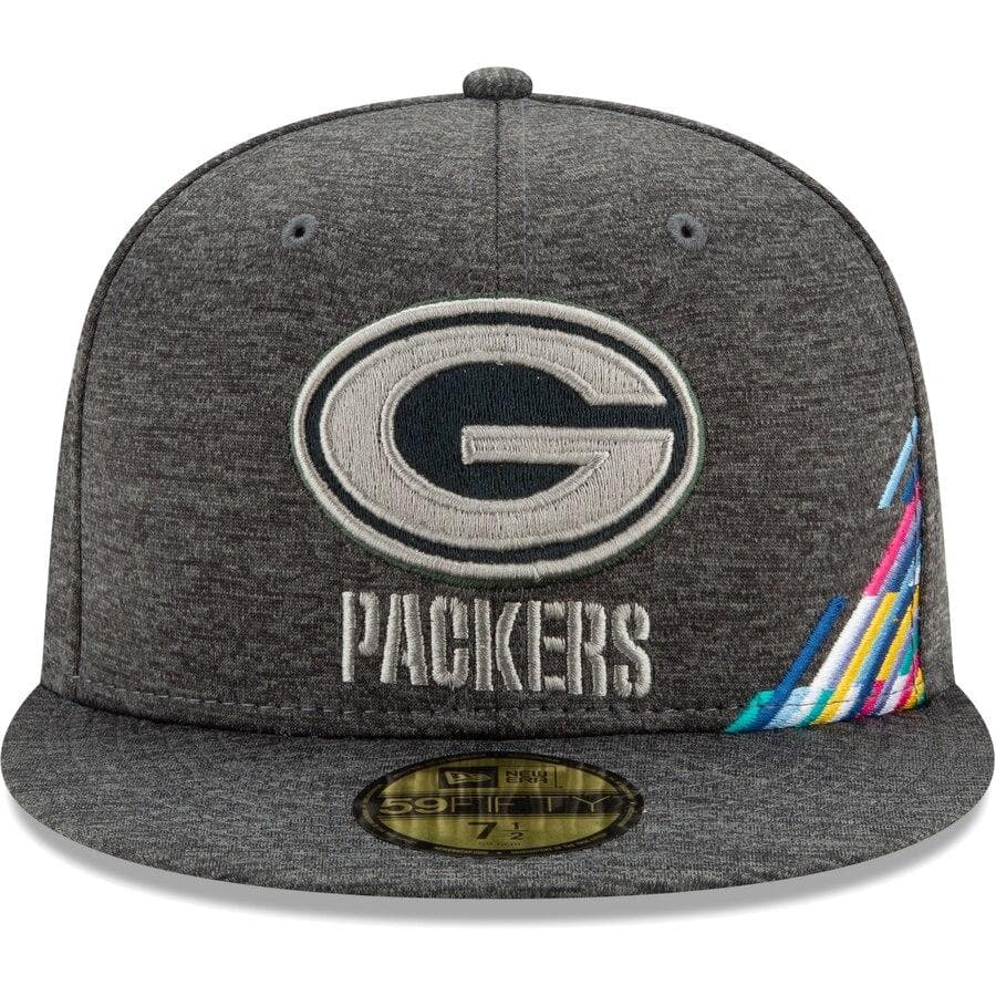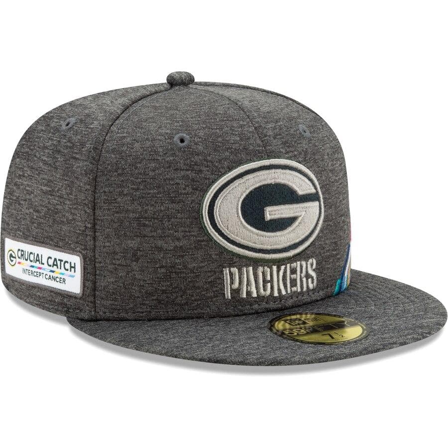 Support the fight against cancer with the 2019 NFL Crucial Catch Sideline Collection, worn by players and coaches during weeks 5 through 10 of the NFL season. The 59FIFTY fitted cap uses shadow tech fabric and features an embroidered Green Bay Packers logo on the front with accent stitching to outline the logo. Crucial Catch-inspired lines are located on the lower right front panel and the Crucial Catch "Intercept Cancer" side patch is woven on the right-wear side. The back features the Official NFL100 logo to complete this New Era cap. The NFL does not profit from the sale of Crucial Catch products. Charitable contributions are donated to the American Cancer Society.