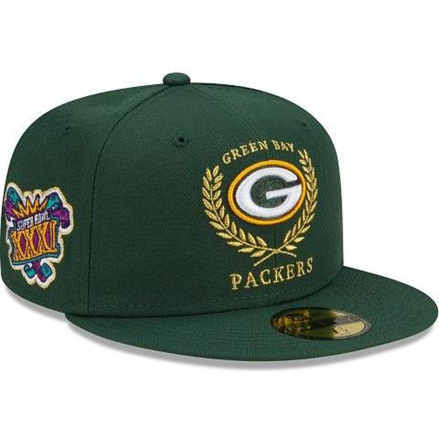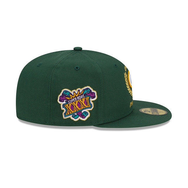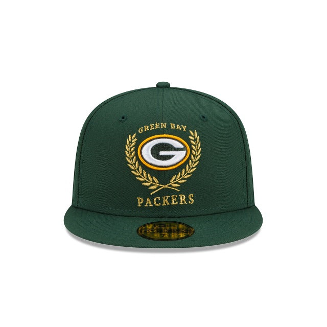 The Green Bay Packers Gold Classic 59FIFTY Fitted Cap features an embroidered Packers insignia at the front panels with a league specific patch at the right-wear side and the NFL Shield at the rear.
