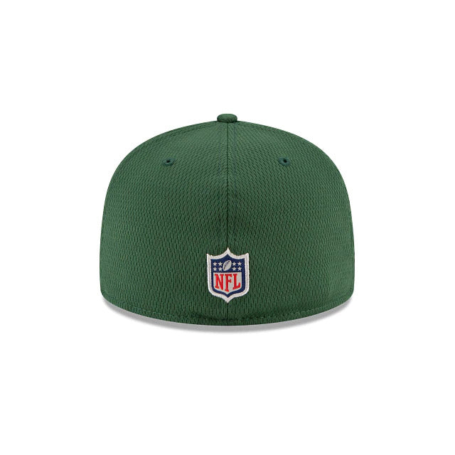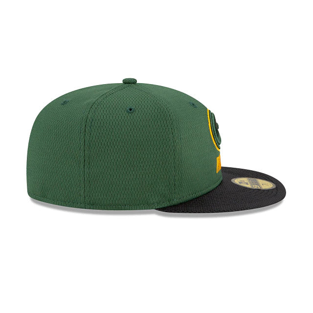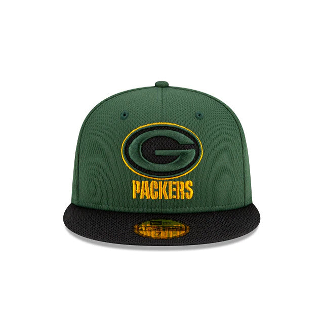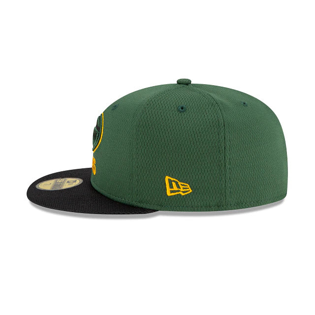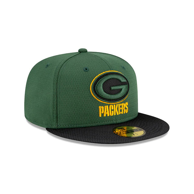 Travel in style with the Green Bay Packers Official NFL Sideline Road 59FIFTY Fitted Cap featuring a unique two-tone dashmark fabrication with an embroidered team logo at the front panels. Team color accents and the Official NFL Shield at the rear complete the official cap that players, coaches and staff will wear on the sidelines during the 2021 NFL season.