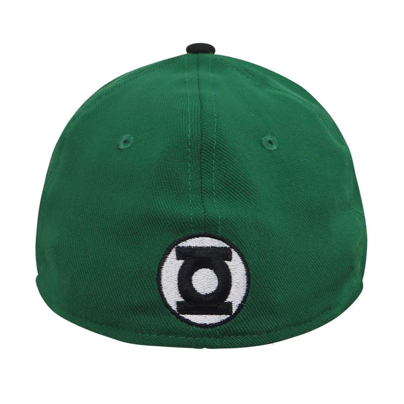 Made from 100% polyester, this EXCLUSIVE Green Lantern hat from New Era features a raised, embroidered, and very black Green Lantern symbol layering a white, circular background.