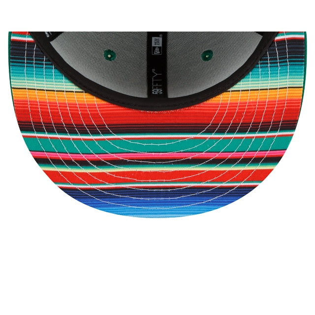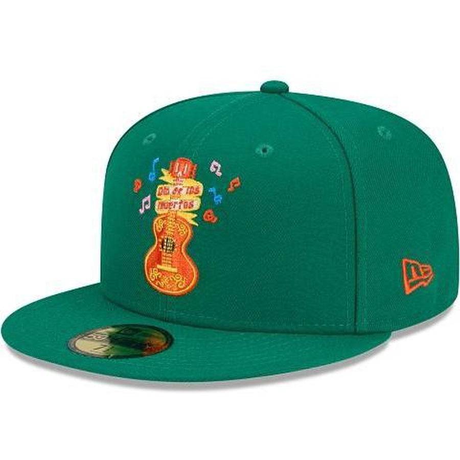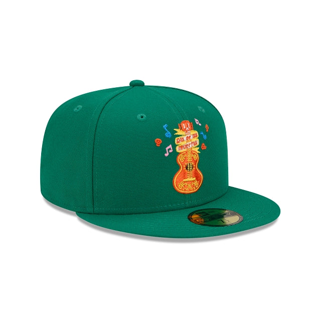 Celebrate the Dia de Los Muertos with the Guitar 59FIFTY Fitted Cap featuring an embroidered guitar at the front panels, matching New Era flag at the left-wear side and a colorful undervisor.