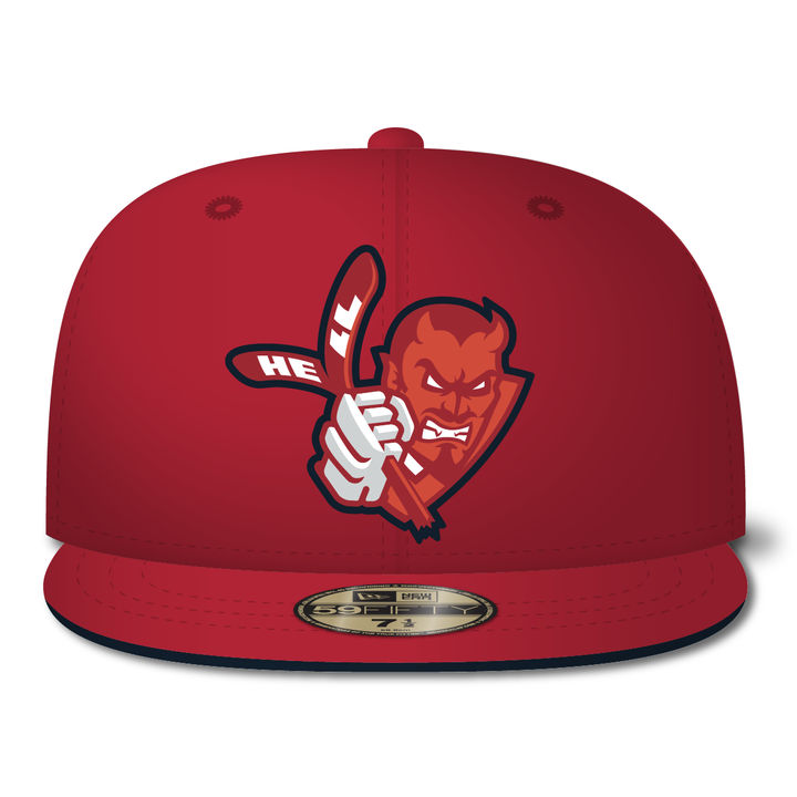 The New Era H. E. Double Hockey Sticks 59FIFTY Fitted Hat has been designed by Matthew B. What the Heck, sell your soul to the devil and let him bless you with the gift/curse to play hockey like H. E . Double Hockey Sticks.