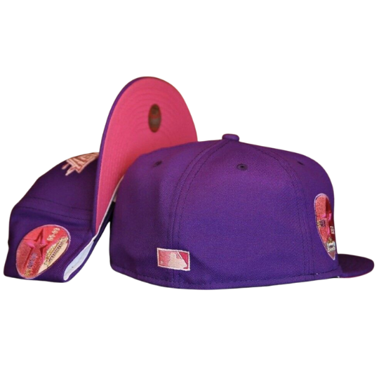 This New Era Houston Astros "Lean With It" fitted hat is a My Fitteds exclusive. The fitted has a purple and pink colorway with the entire six panel structured high crown, embroidered eyelets and fabric squatchee button being purple. The flat bill of the fitted is also purple with a pink bottom undervisor. The front panel features the Houston Astros logo embroidered in white thread outlined in pink thread. The right panel features a 35th Anniversary side patch embroidered in pink and white colorway. The back of the crown features an official MLB Batterman logo embroidered in white and pink threads. This is an exclusive fitted hat drop and therefore rare to purchase.