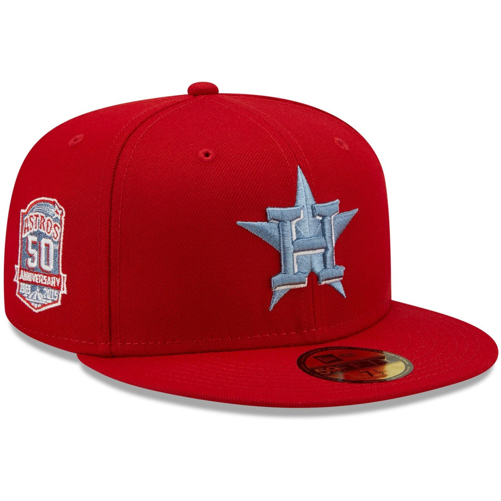 Express your deep devotion to the Houston Astros with this Blue Undervisor 59FIFTY hat from New Era. It features an embroidered Houston Astros logo across the front and commemorative 50th Anniversary graphics on the side. The fitted construction also provides a more comfortable, snug fit.