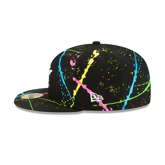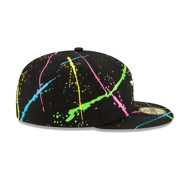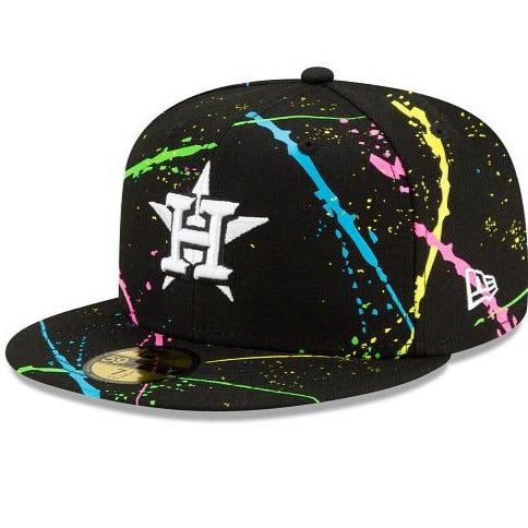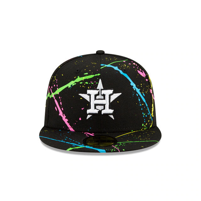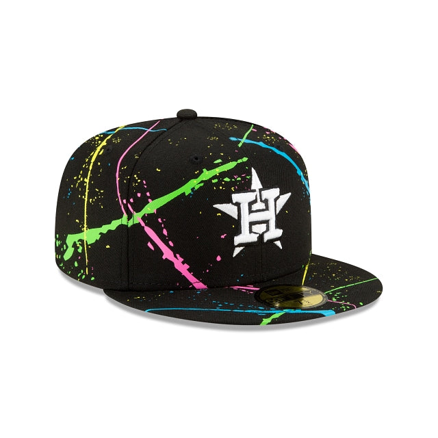 Light up the night with the Houston Astros Streakpop 59FIFTY Fitted Cap featuring an embroidered team logo at the front panels with a neon splatter detailing throughout the crown and a MLB Batterman logo at the rear. Additional details include a gray undervisor.