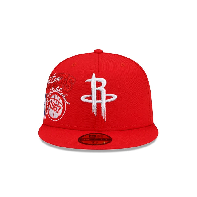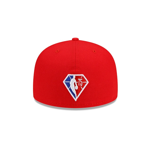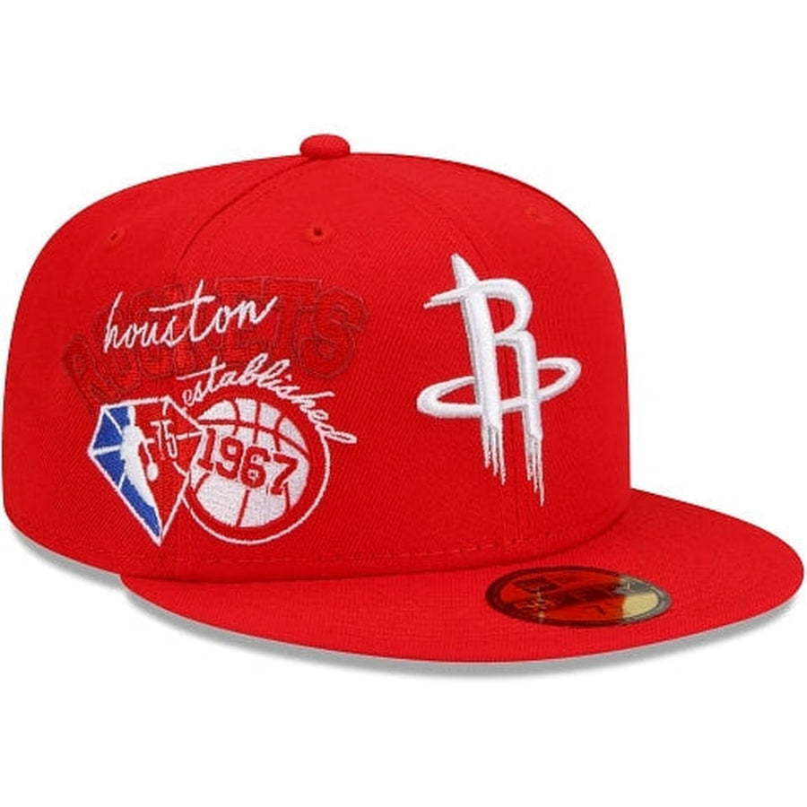The push for the playoffs starts with this year's NBA Back Half Collection. The Houston Rockets Back Half 59FIFTY Fitted Cap features an embroidered Rockets logo at the front panels with team and league specific embroidered artwork at the right-wear side extending to the front panels, and the NBA 75th anniversary logo embroidered at the rear.