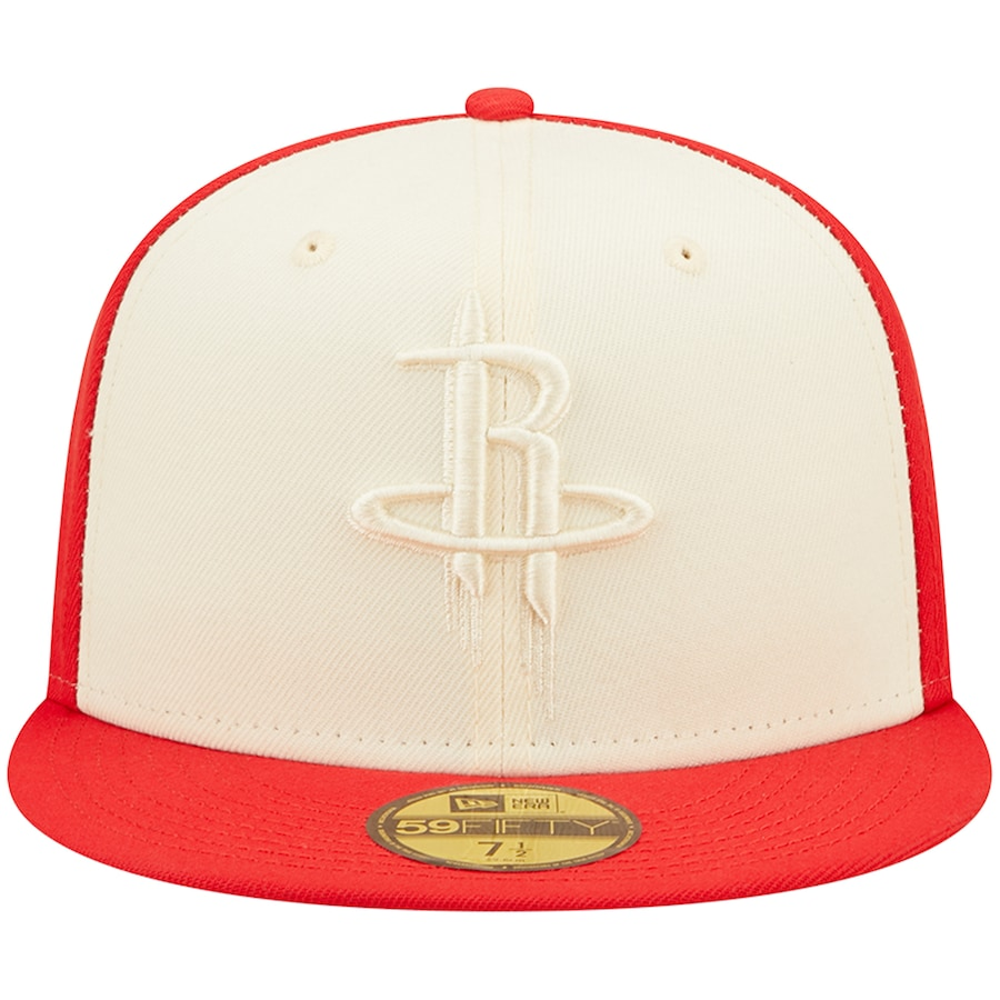 Top your game day getup off excellent with a bold display of Houston Rockets pride by sporting this Cork Two-Tone 59FIFTY fitted hat from New Era. It features the Houston Rockets logo in raised embroidery on the front panels and a contrasting color on the bill and rear crown that makes this cap a striking focal point. In addition, the fitted design ensures it rests comfortably on the head each time you reach for it.