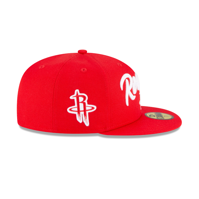The Houston Rockets NBA Draft Alternate 59FIFTY Fitted Cap features a team color fabrication with a Rockets cursive script and logo embroidered at the front panels using a chain stitching technique, a team patch at the right-wear side and the Official NBA logo at the rear. Additional details include a custom draft series interior taping and team suiting label tailored exclusively for your team.