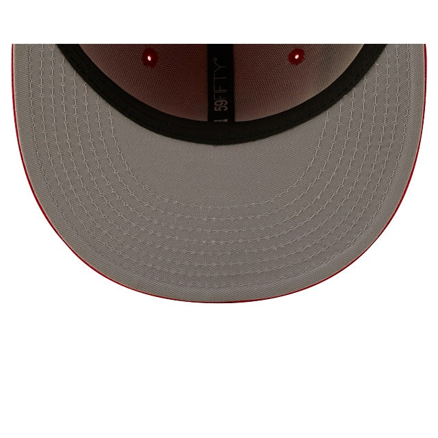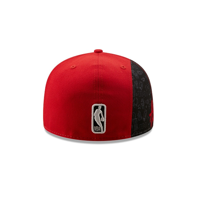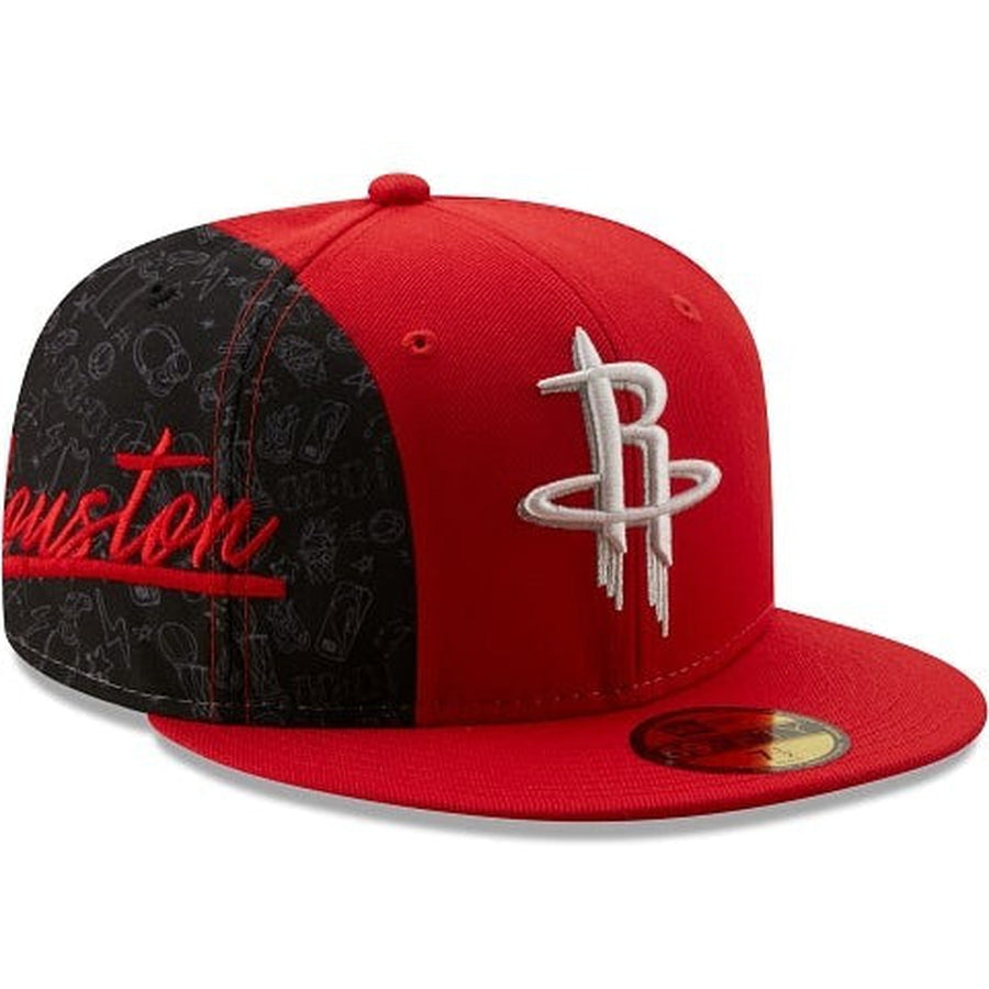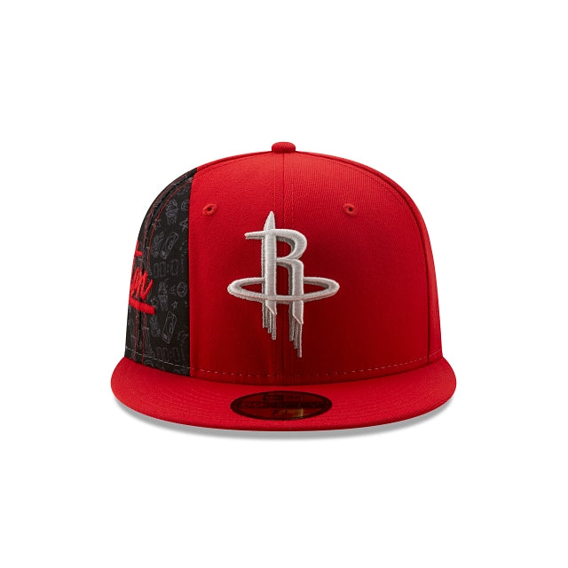 The Houston Rockets Side City Doodle 59FIFTY Fitted Cap features an embroidered Rockets logo at the front panels, a team script with league inspired Doodle at the right-wear side, and a matching NBA logo at the rear.