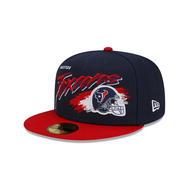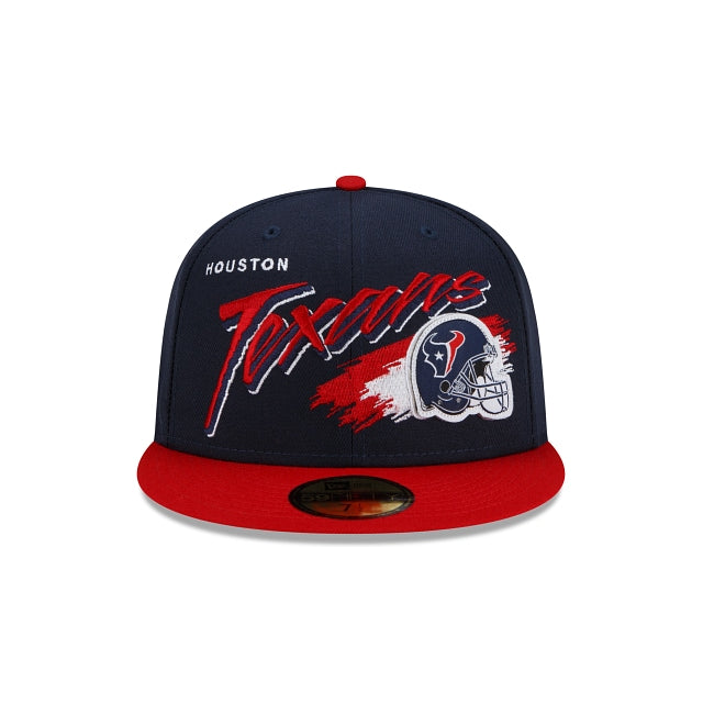 Rewind time with the Houston Texans Helmet 59FIFTY Fitted Cap featuring an embroidered Texans script, complimented by a raised team helmet at the front panels with a division patch at the right-wear side and the NFL Shield at the rear.