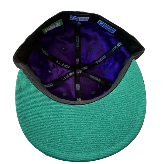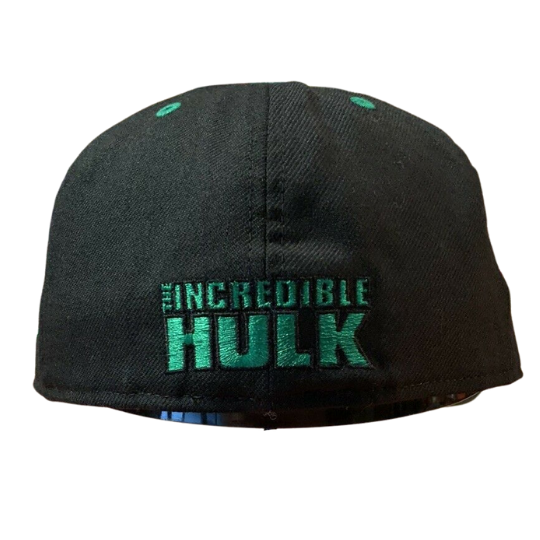 Incredible Hulk 59FIFTY fitted hat is designed in a 3d style with the front two panels kelly green incolor with the Hulk eyes embroidered. The back and side panels are black which represents the Hulk's hair. The fabric squatchee button on top of the cap is also kelly green as well as the visor and undervisor. Inside the crown of the cap is purple velvet. The back of the crown features the wordmark "The Incredible Hulk" embroidered in kelly green thread. Don't make me get angry...you would'nt like it when Im angry and will be upset that you didn't grab this collectible cap.