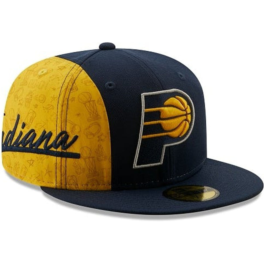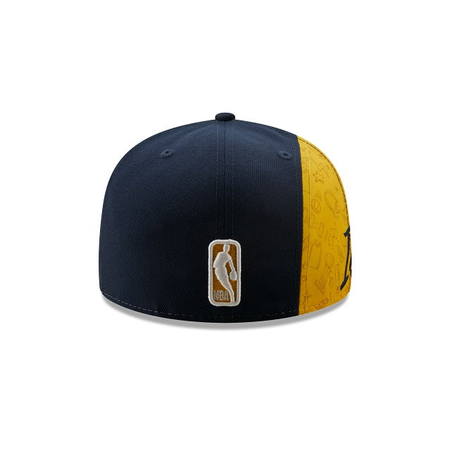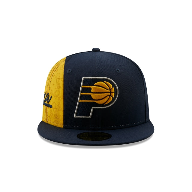 The Indiana Pacers Side City Doodle 59FIFTY Fitted Cap features an embroidered Pacers logo at the front panels, a team script with league inspired Doodle at the right-wear side, and a matching NBA logo at the rear.