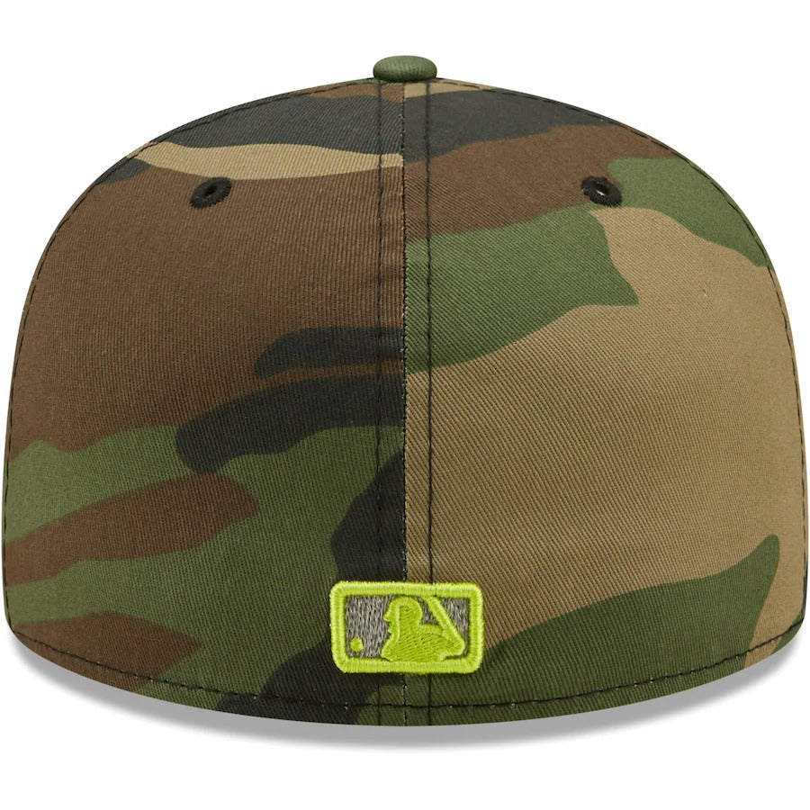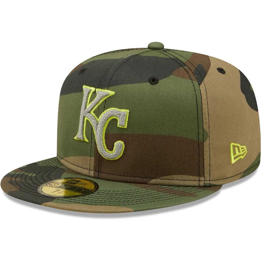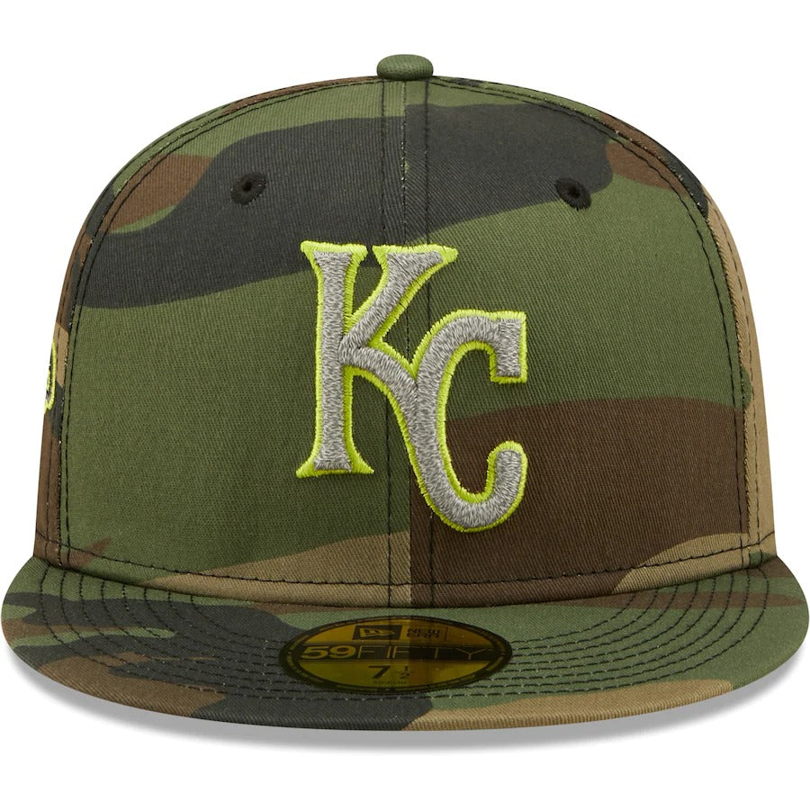 Reminisce on the good ol' Kansas City Royals days with this New Era Woodland 59FIFTY hat. This Cooperstown Collection cap features a fitted closure, and trendy high crown for a classic game day look. The bold Kansas City Royals embroidery on the front panels is complemented by the 2015 World Series side patch, showing you're more than an average fan. Plus, the reflective undervisor and standout camo pattern add a charming touch.