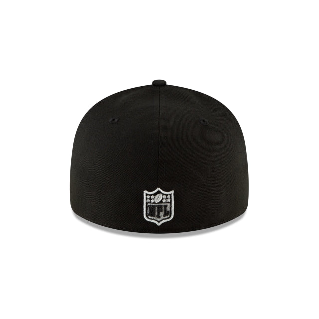 The Las Vegas Raiders Logo Mix Low Profile 59FIFTY Fitted Cap features a blend of Raiders logos embroidered at the front panels with a team wordmark at the right-wear side and a team color NFL Shield at the rear. The undervisor of this cap matches the cap color.