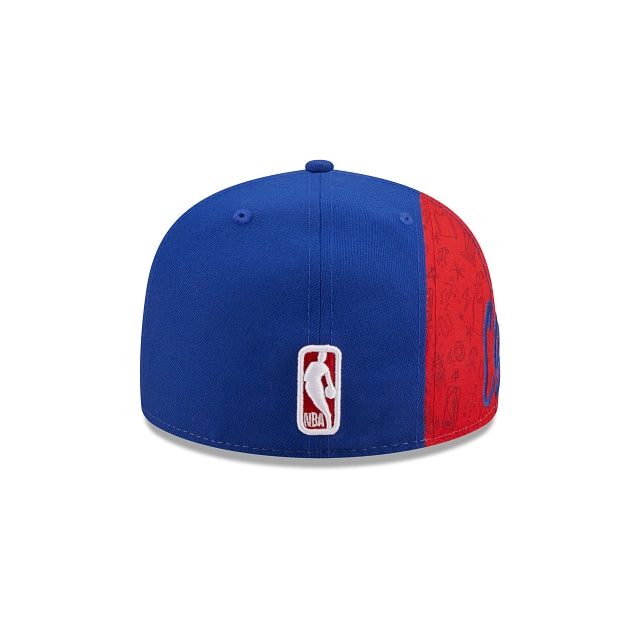 The Los Angeles Clippers Side City Doodle 59FIFTY Fitted Cap features an embroidered Clippers logo at the front panels, a team script with league inspired Doodle at the right-wear side, and a matching NBA logo at the rear.