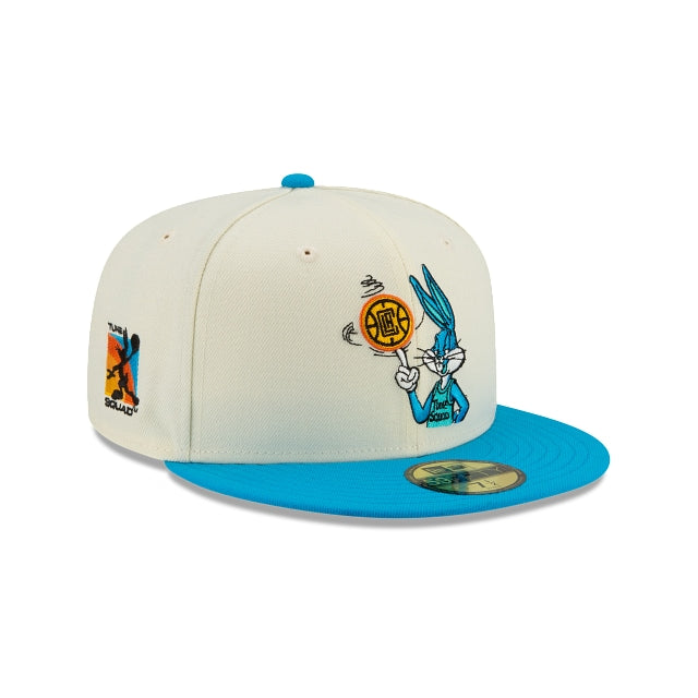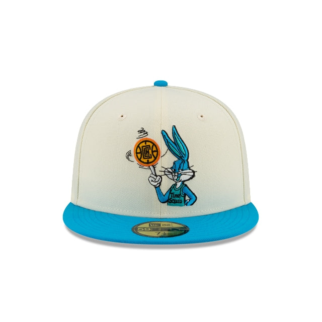 A new legacy is here. The Los Angeles Clippers x Space Jam 59FIFTY Fitted Cap features Bugs Bunny with the team logo embroidered at the front panels, a Tune Squad patch embroidered at the right-wear side and a matching NBA logo at the rear. Additional details include a gray undervisor.