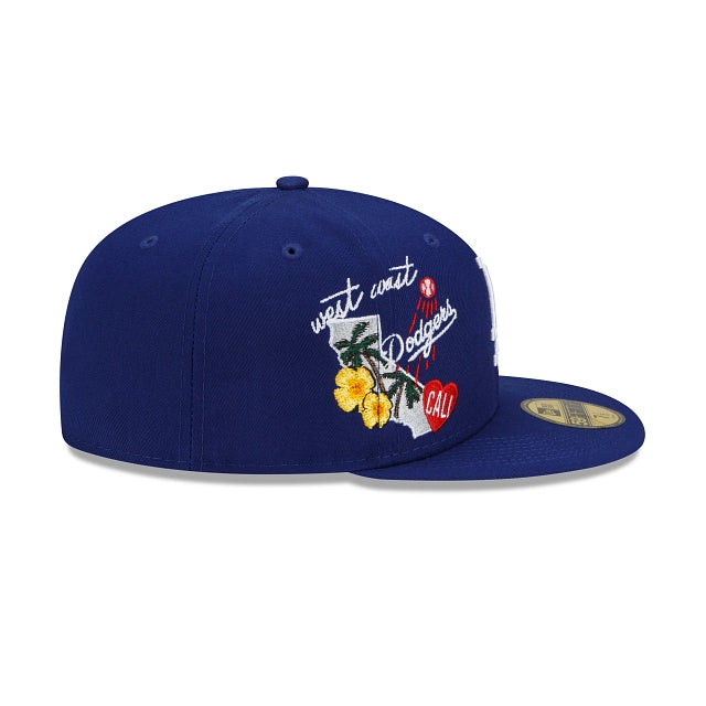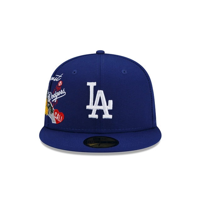 City ties. Represent your team with the Los Angeles Dodgers City Cluster 59FIFTY Fitted Cap featuring an embroidered Dodgers logo at the front panels with a city inspired patch at the right-wear side and a matching MLB Batterman logo at the rear. Additional details include a gray undervisor.
