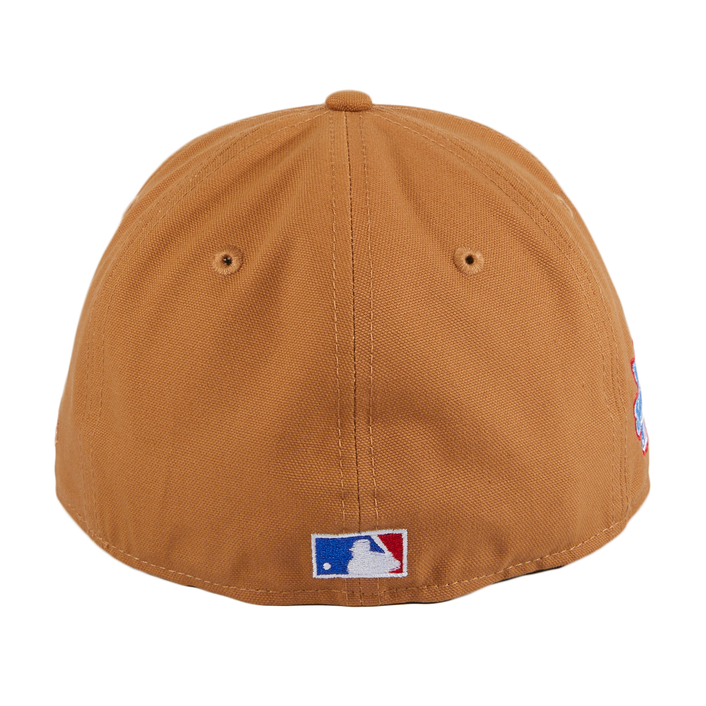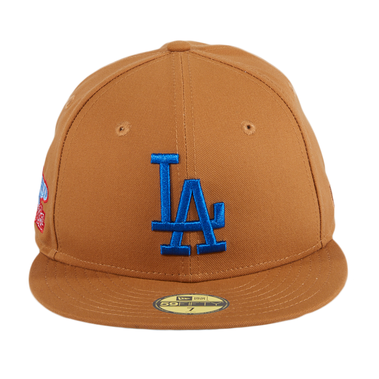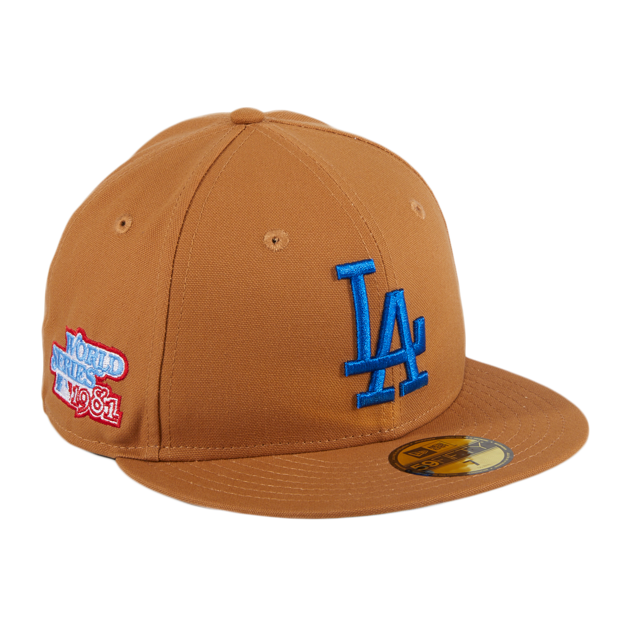 The Los Angeles Dodgers Cowboy Pack fitted hat is a Hat Club Exclusive drop. The fitted hat features a light western brown six panel structured high crown, embroidered eyelets and fabric squatchee button. The flat bill of the fitted cap is also light brown with a grey bottom undervisor and black sweatband. The front panel features the LA Dodgers logo embroidered in a vibrant royal blue thread. The right panel features a 1981 World Series side patch. The back of the crown includes the official MLB Batterman logo embroidered in the classic red, white and blue thread.