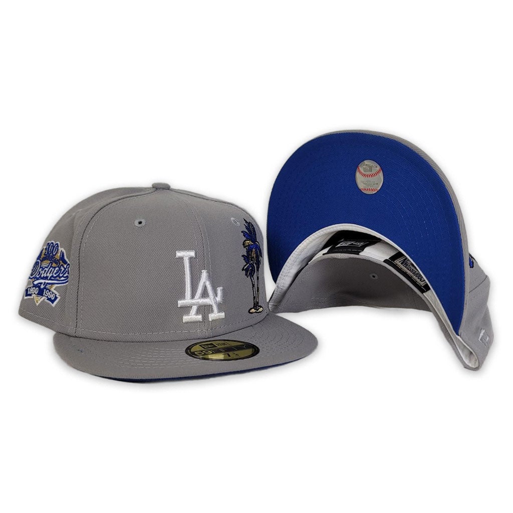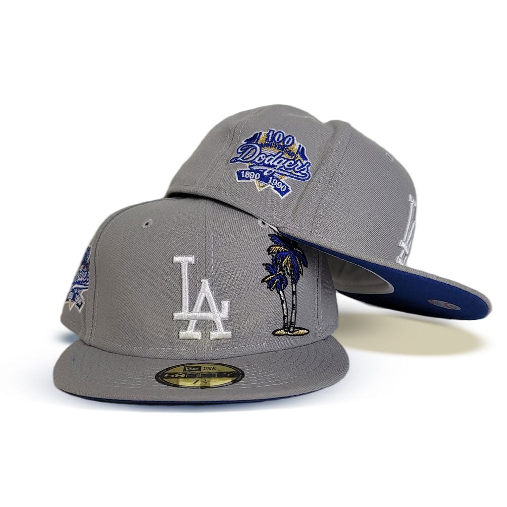 New Era Los Angeles Dodgers Gray/Royal Blue Palm tree 100th Anniversary 59FIFTY Fitted Hat
