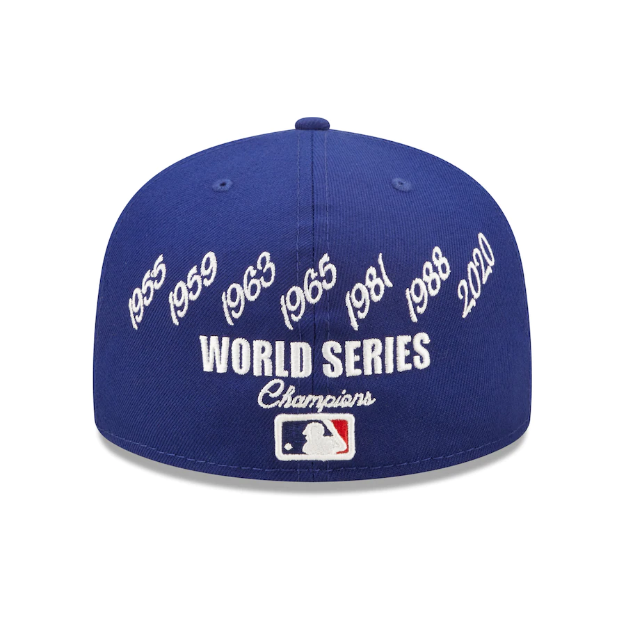 Put the spotlight on your Los Angeles Dodgers previously taking home the Commissioner's Trophy with this Crown 59FIFTY hat from New Era. It features the Los Angeles Dodgers logo in raised embroidery and commemorative 7x World Series Champions graphics embroidered on the front and back. The fitted construction also ensures a perfect fit.