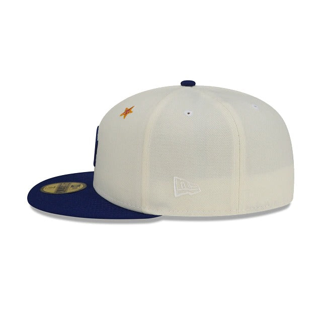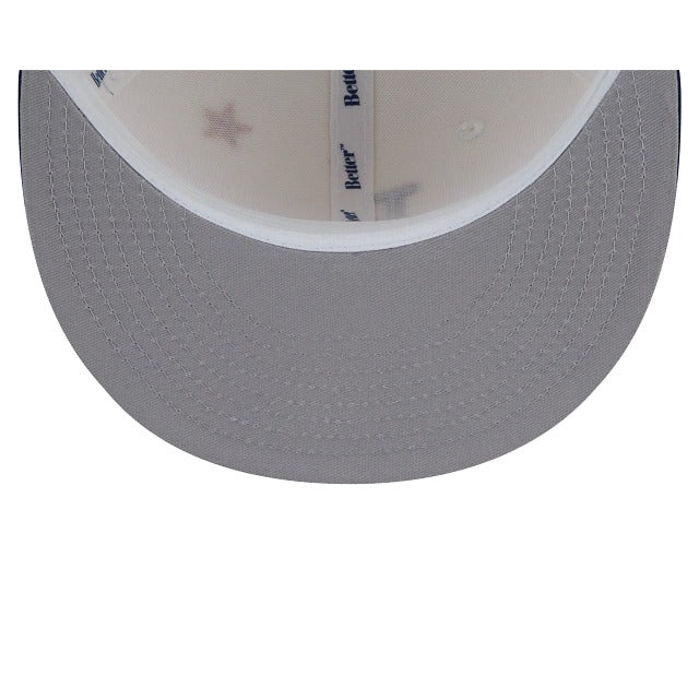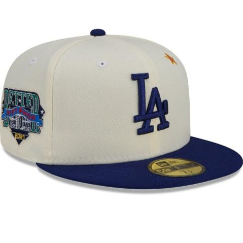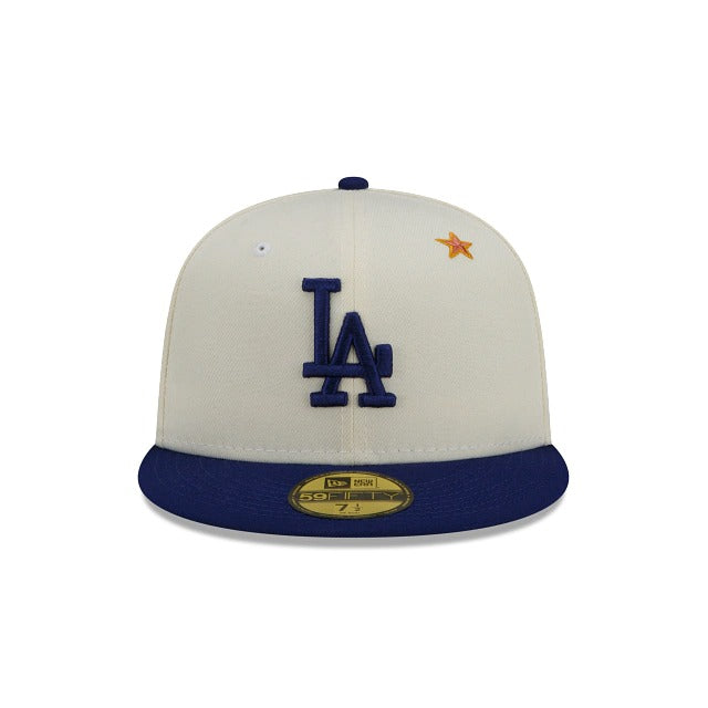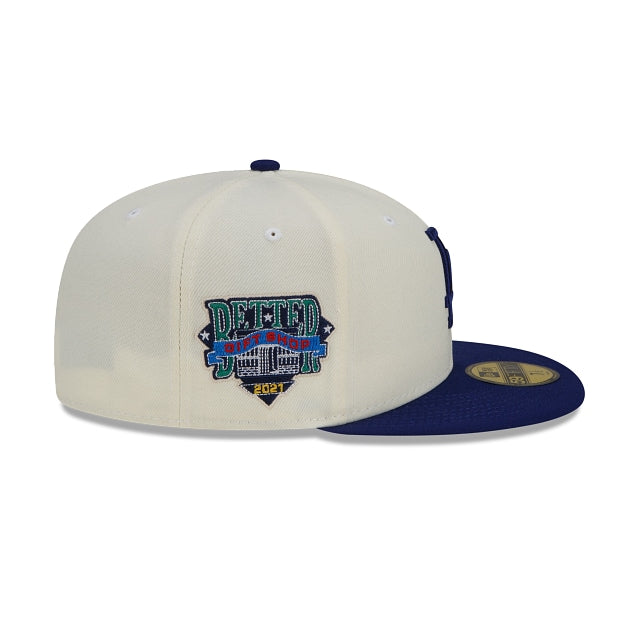 The Los Angeles Dodgers Better Gift Shop 59FIFTY Fitted Cap features an embroidered Dodgers logo with a city inspired eyelet at the front panels, a Better Gift Shop World Series themed patch at the right-wear side, and a matching MLB Batterman logo at the rear. Additional details include a gray undervisor.