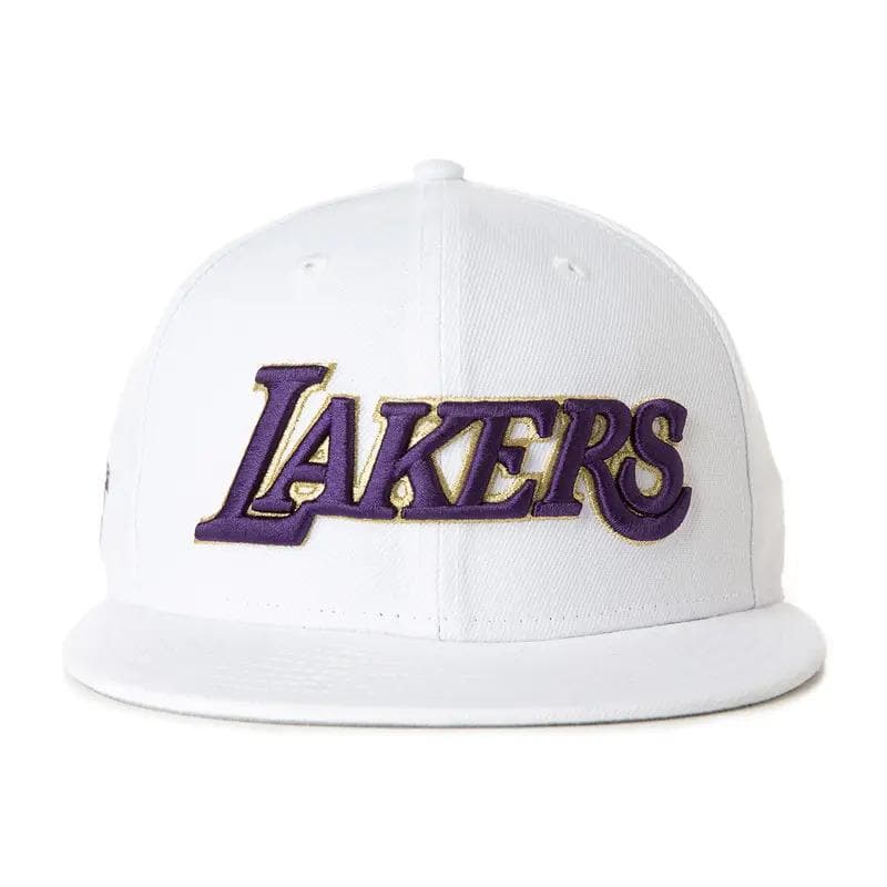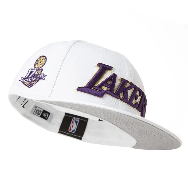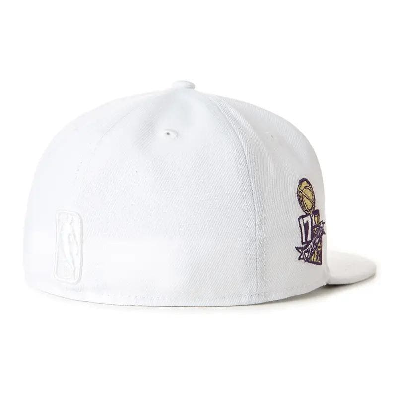 The New Era Los Angeles Lakers 17x Champions 59Fifify fitted hat features a rich purple and metallic gold logo and a white crown.