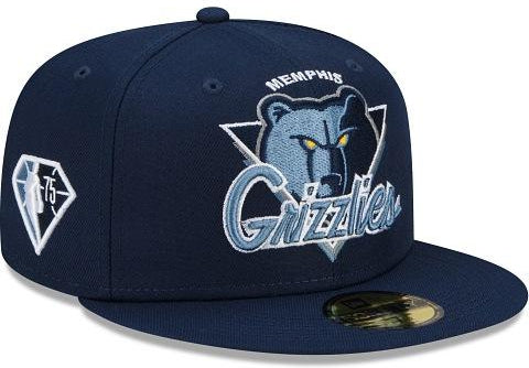 Fresh look for a fresh start. The Memphis Grizzlies Tip Off 59FIFTY Fitted Cap features a custom Grizzlies mark inspired by logos and wordmarks embroidered at the front panels with the Official NBA 75th anniversary logo embroidered at the right-wear side. Additional details include a team logo at the rear with a gray undervisor.