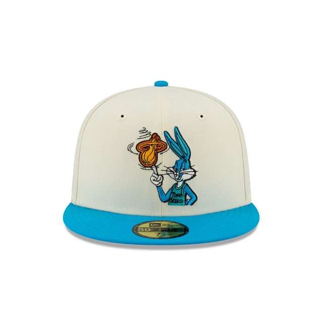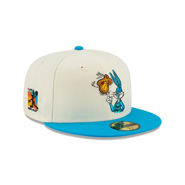 A new legacy is here. The Miami Heat x Space Jam 59FIFTY Fitted Cap features Bugs Bunny with the team logo embroidered at the front panels, a Tune Squad patch embroidered at the right-wear side and a matching NBA logo at the rear. Additional details include a gray undervisor.