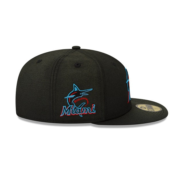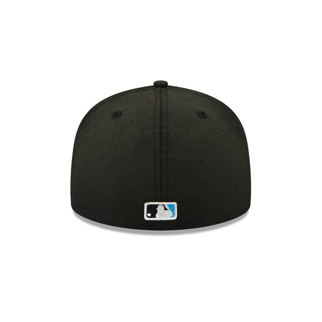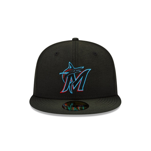 Vintage vibes for a timeless look. The Miami Marlins Sun Fade 59FIFTY Fitted Cap features a faded fabrication with an embroidered team logo at the front panels, a team patch at the right-wear side and a matching MLB Batterman logo at the rear. Additional details include a green undervisor.