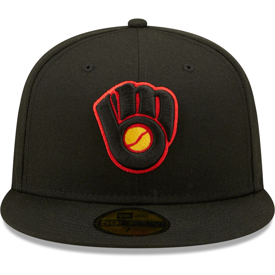 New Era Milwaukee Brewers Black 1982 World Series Gold Undervisor 59FIFTY Fitted Hat