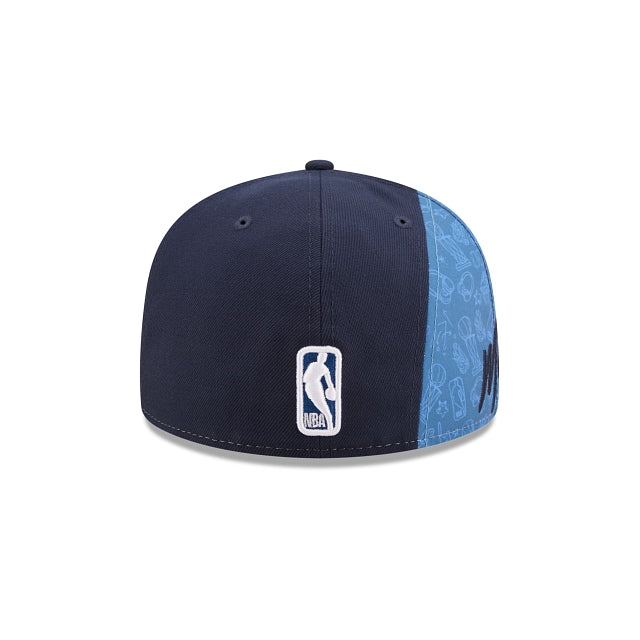 The Minnesota Timberwolves Side City Doodle 59FIFTY Fitted Cap features an embroidered Timberwolves logo at the front panels, a team script with league inspired Doodle at the right-wear side, and a matching NBA logo at the rear.