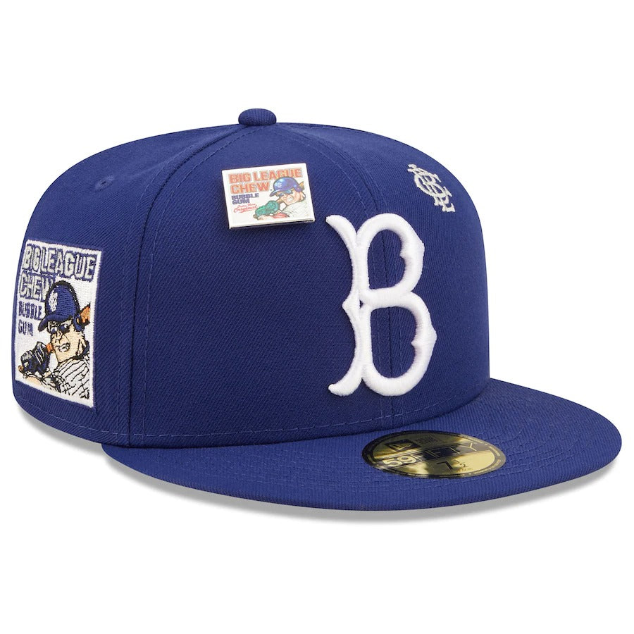 The MLB and Big League Chew have teamed up to bring Brooklyn Dodgers fans this one of a kind, 59FIFTY Fitted Hat. Featuring a high crown and flat bill, this New Era hat will take your game day look to the next level. Its classic Brooklyn Dodgers graphics and Big League Chew details make it unlike anything else in your collection.