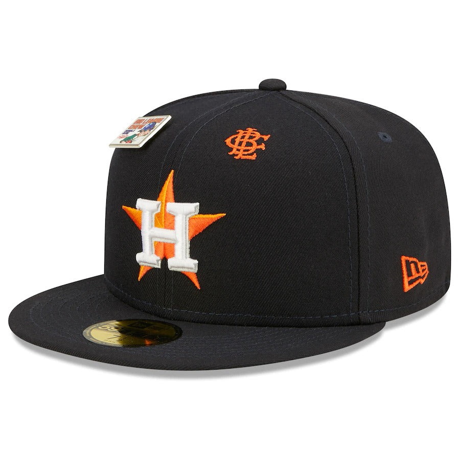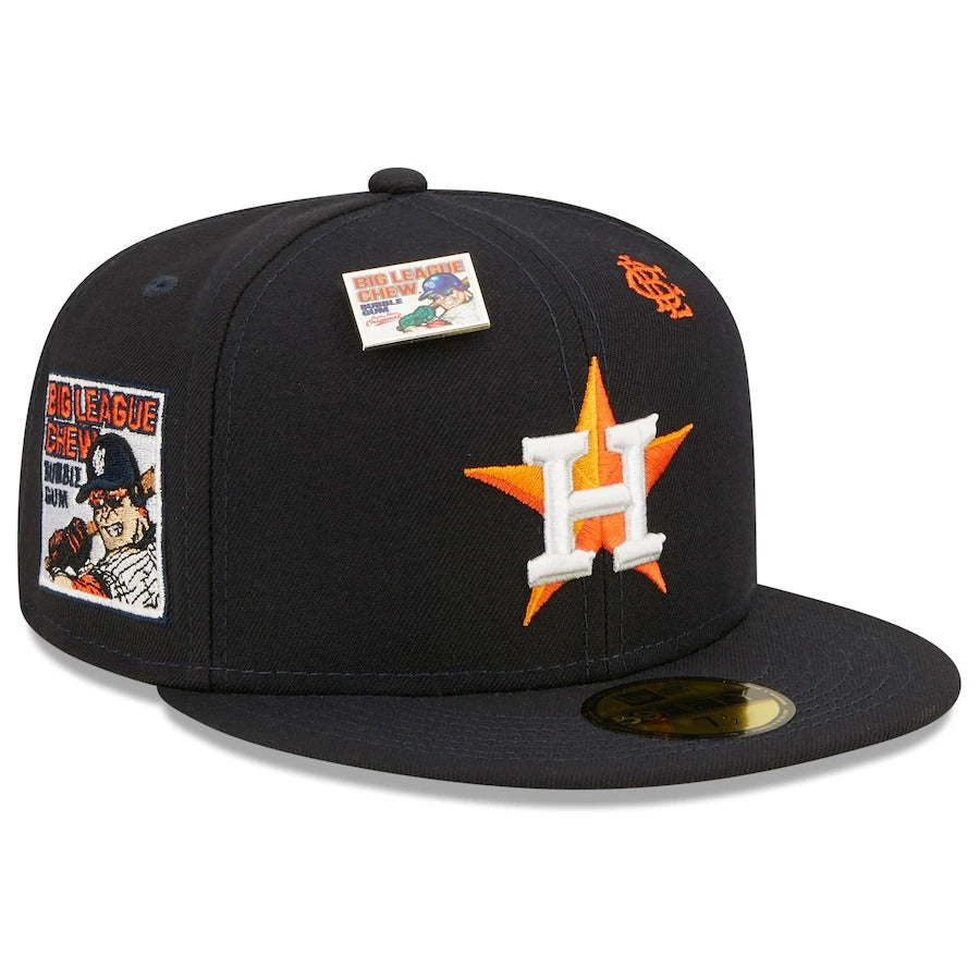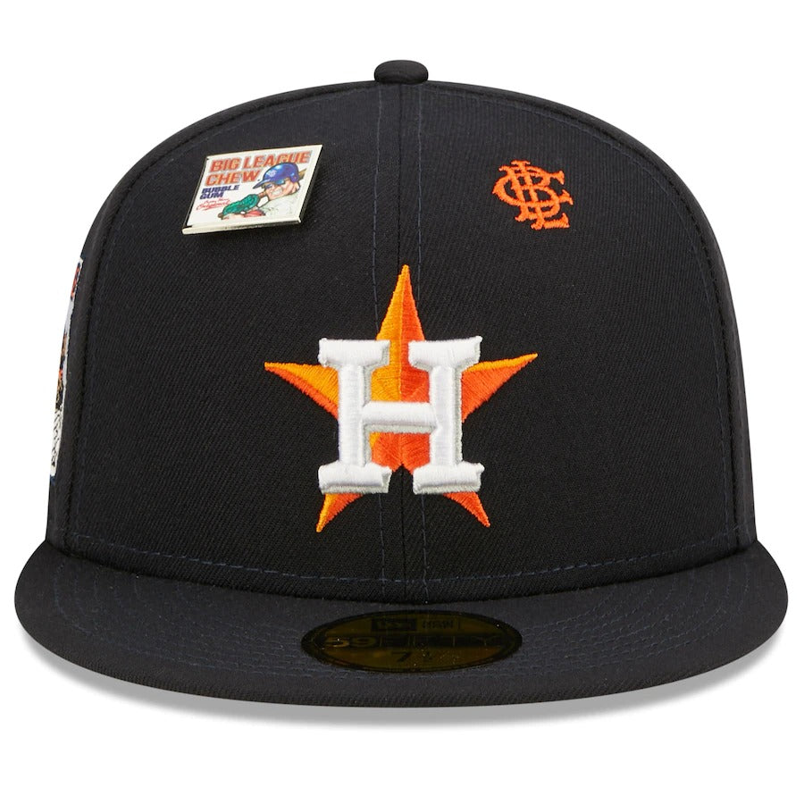 The MLB and Big League Chew have teamed up to bring Houston Astros fans this one of a kind, 59FIFTY Fitted Hat. Featuring a high crown and flat bill, this New Era hat will take your game day look to the next level. Its classic Houston Astros graphics and Big League Chew details make it unlike anything else in your collection.