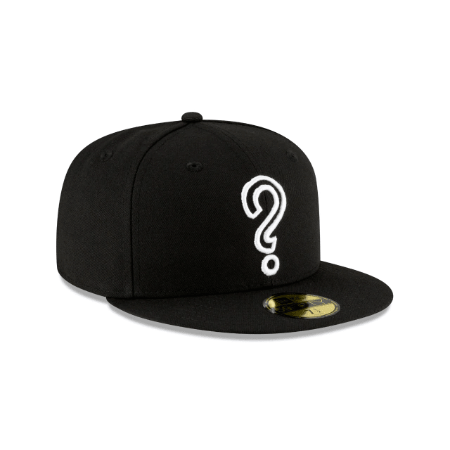 Do not pass GO without the Monopoly Chance 59FIFTY Fitted Hat featuring an embroidered Chance Question Mark at the front panels with a Monopoly logo at the rear and a teal undervisor.