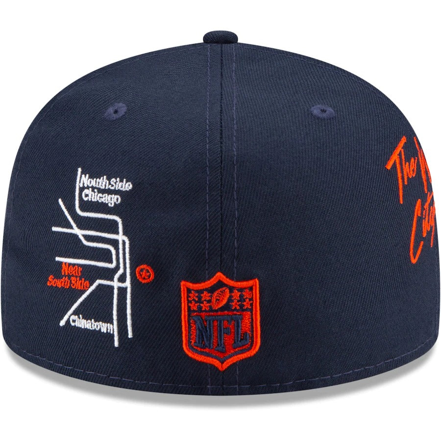 At the intersection of sports and street culture, you will find this City Transit 59FIFTY fitted hat by New Era. It features major landmark embroidered graphics on the sides and the Chicago Bears logo on the crown. Additionally, this cap has an original map of the Chicago Bears stadium location on the rear for a modern touch, sure to grab everyone's attention.