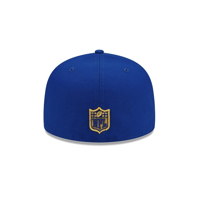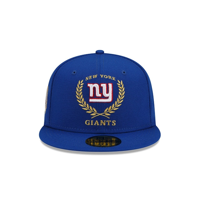 The New York Giants Gold Classic 59FIFTY Fitted Cap features an embroidered Giants insignia at the front panels with a league specific patch at the right-wear side and the NFL Shield at the rear.