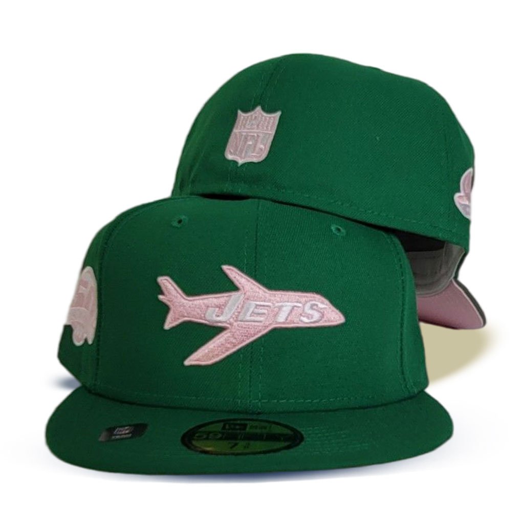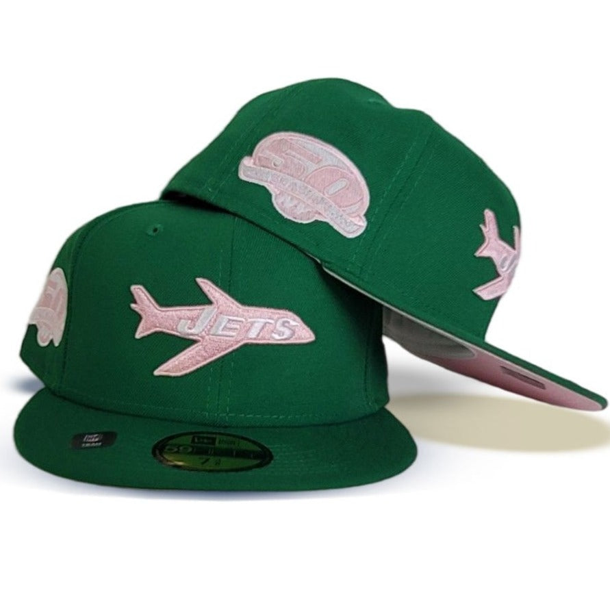 New Era New York Jets Green 50th Season Patch Pink Undervisor 59FIFTY Fitted Hat