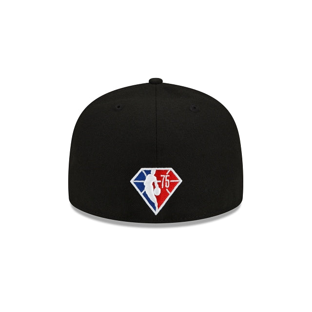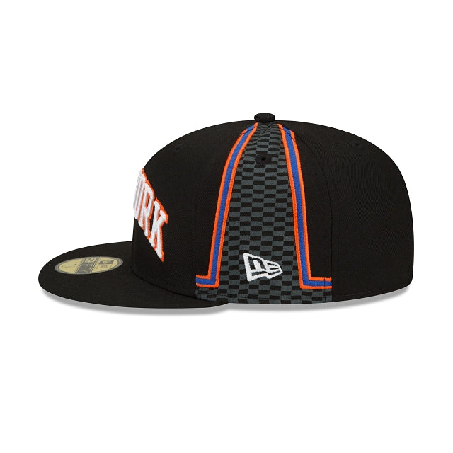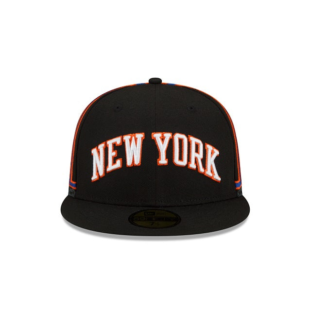 There's no limit in this city. The New York Knicks City Edition 59FIFTY Fitted Cap features an embroidered Knicks wordmark at the front panels, a team logo at the right-wear side, and the Official NBA 75th Anniversary logo at the rear. Additional details include a uniquely curated city inspired crown.